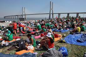LISBON, (Reuters) – Under a burning sun, hundreds of thousands of Catholics battled on Saturday to keep cool with water sprays, fans and improvised tents at a massive shadeless outdoor venue in Lisbon where Pope Francis will hold an evening vigil.
