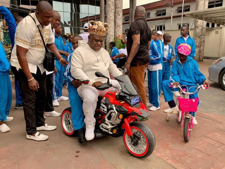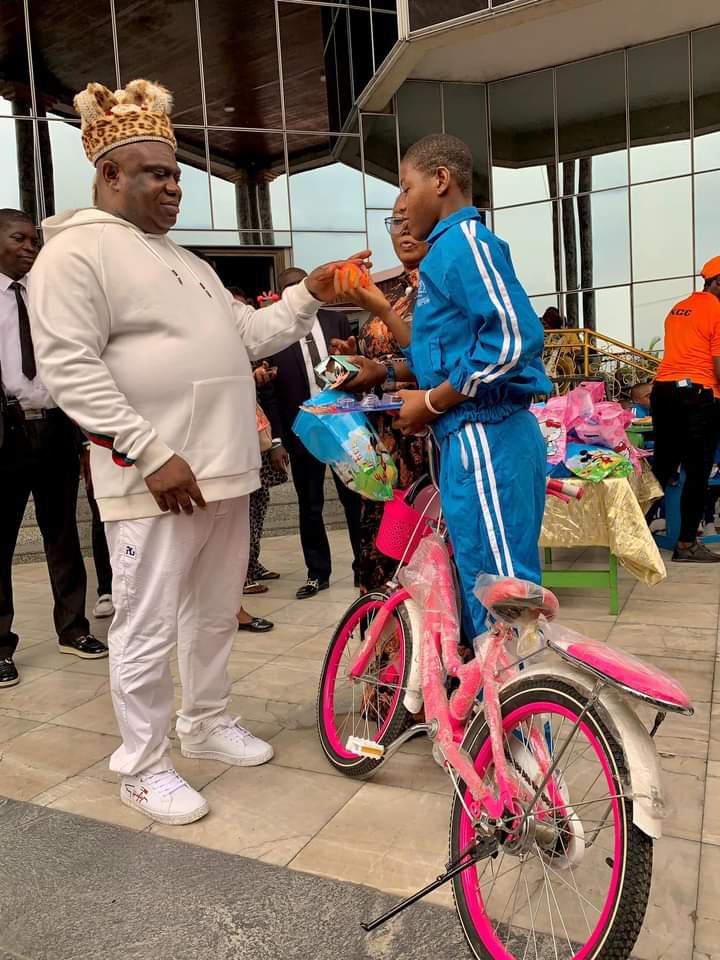 During the celebration, His Royal Majesty took time to donate bicycles to all the Down Syndrome children in OPM free school for children Born with Autism and Down Syndrome while various gifts were distributed to them together with food and drinks.