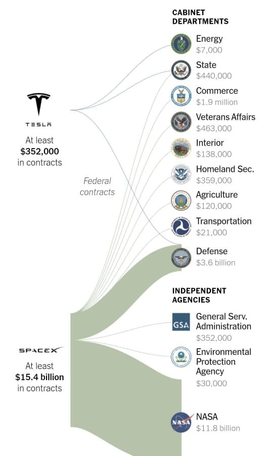 Two of Elon Musk’s companies account for at least $15.4 billion in government contracts over the past decade.