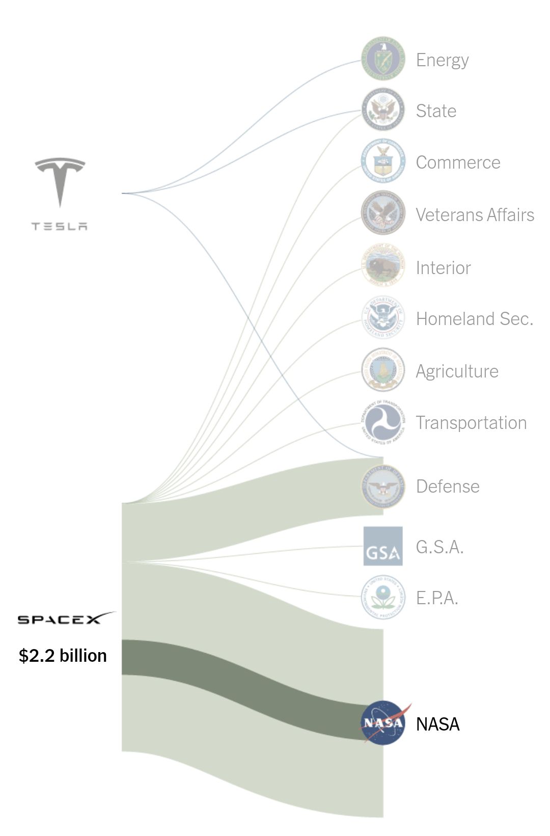 Elon Musk’s rocket company, SpaceX, effectively dictates NASA’s rocket launch schedule. The Defense Department relies on him to get most of its satellites to orbit. His companies were promised $3 billion across nearly 100 different contracts last year with 17 federal agencies.